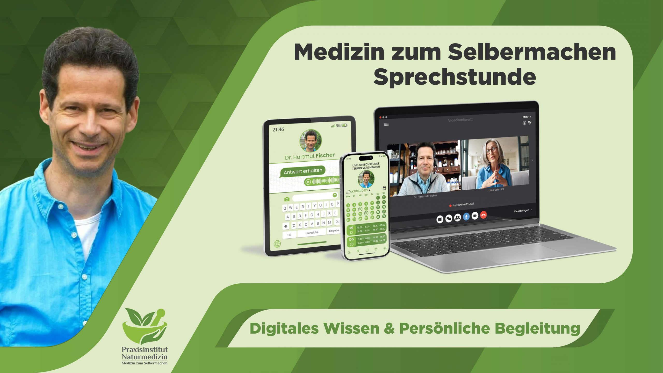 Genau dafür ist die Medizin zum Selbermachen Sprechstunde gemacht. Sie ist das Herzstück der Gesundheitsschule, weil sie etwas verbindet, das in dieser Form einzigartig ist: eine digitale Wissens‑Sprechstunde und die Möglichkeit zur persönlichen Live‑Sprechstunde mit Dr. Hartmut Fischer, wenn Du tiefer gehen willst.
